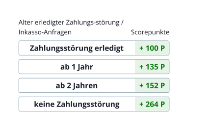 Kod riješenih problema s plaćanjem SCHUFA ipak izračunava score, ali oni negativno utječu na score do tri godine nakon podmirenja duga, pri čemu se negativni utjecaj s vremenom smanjuje.